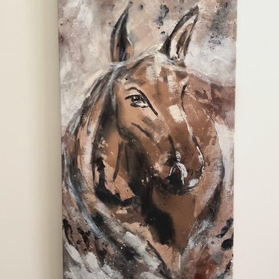 18"x30" Mixed media acrylic and charcoal painting on raw canvas. Comes stretched on 1 inch stretcher bars. Signed on back with artist signature, name of piece and date. Comes with Certificate of Authenticity. Please note actual colors in this painting may vary from screen to screen.